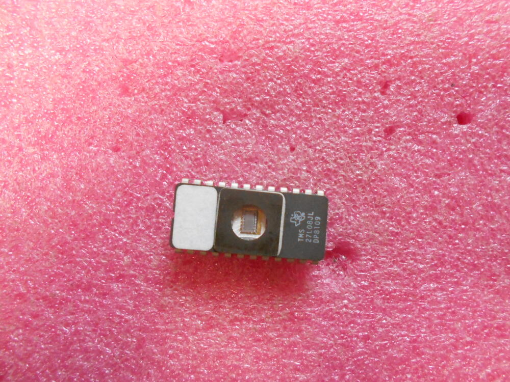 Az epromok ablaka már talán volt leragasztva , lábakon nincs forrasztás nyoma. A fehér , felirati cimke.