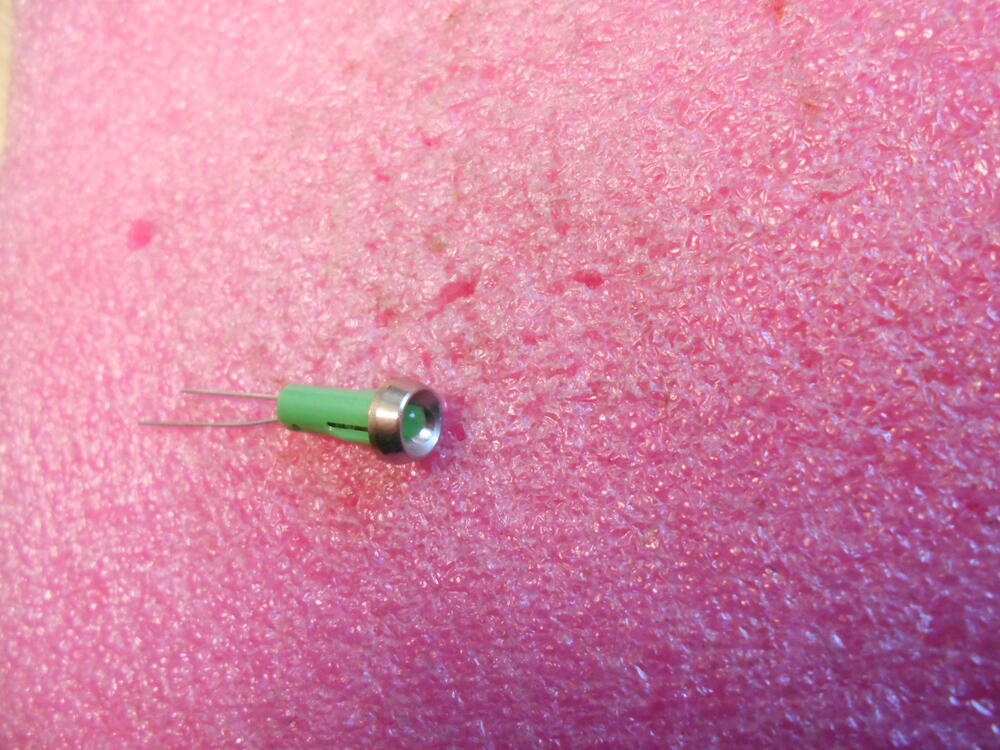 Visszajelző 24-26V. DC. zöld led. Teljes hossz: 16mm. Átmérő: 8mm. Beép. furat: 4,8-5 mm. Bepattintható.