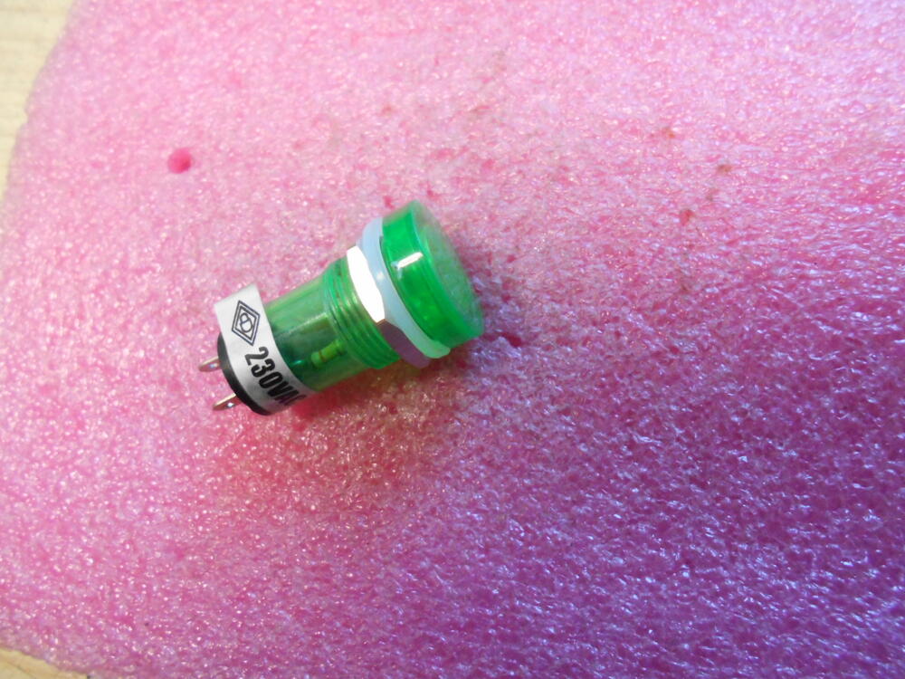 Visszajelző 230V. ZÖLD. Teljes hossz: 38mm. Átmérő: 18mm. Beép. furat. 14,5 mm. Készlet: 1db