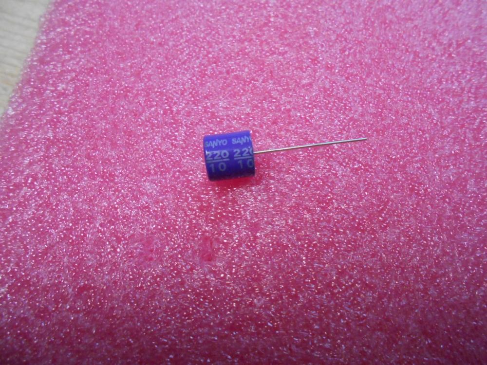 220uF/10V. 105c. elkó. 10x11mm . SANYO. RM: 5mm