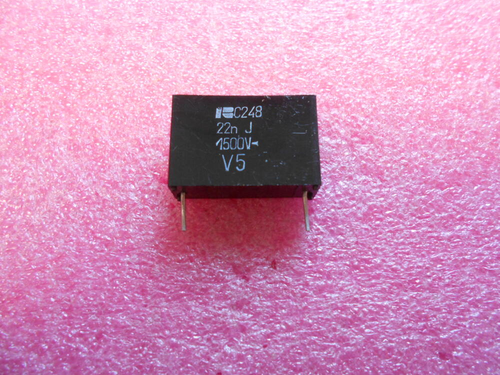 22nF 1500V. DC. Tűrés: 5% Lábtávolság : 22,5mm. Méret: 27x8x18mm Készleten.
