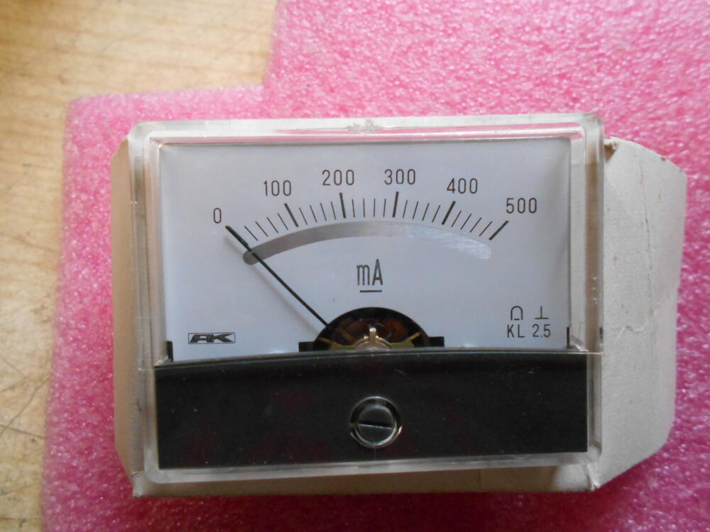 Panelműszer DC500mA. 60x46mm. Rögzítő csavaranyák nincsenek . Készlet: 1db