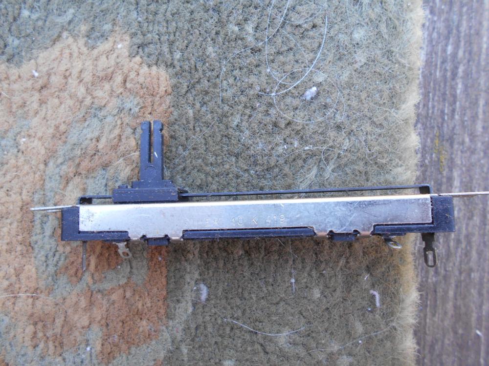 10k. monó lineáris. Teljes hossz: 85mm plusz fülek. Csuszka út: 65mm