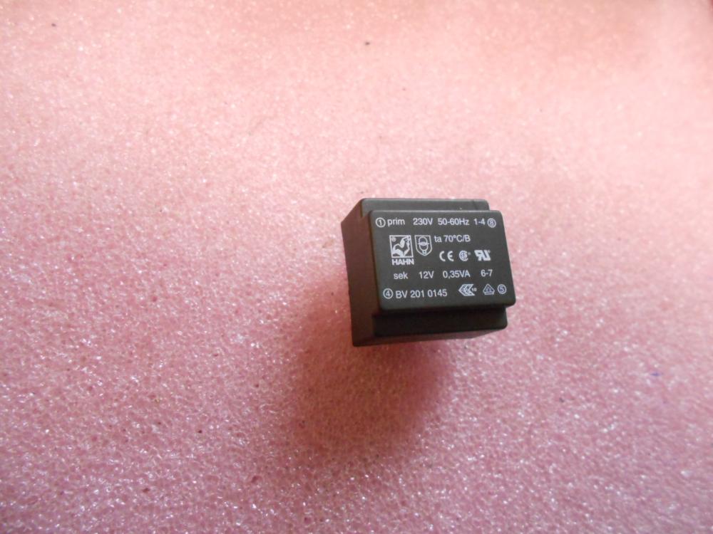 Paneltrafó/Nyáktrafó. 12V. /0,35VA. Primer: 230V. 22x23mm. Magasság: 15mm HAHN