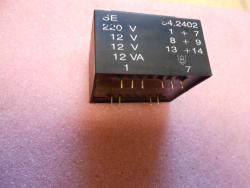 Paneltrafó 220V./2x12V. 12VA. 1db használt. Alapméret:56x47mm. Magasság: 38mm